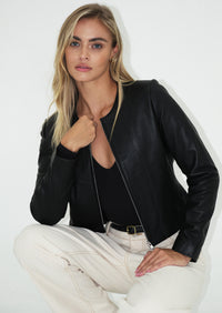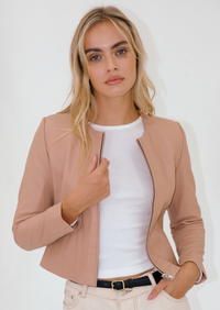 Minimalist and modern, the Apollo collarless jacket is all about clean lines and understated elegance. It looks great over your basics bringing a polished edge to casual looks.