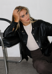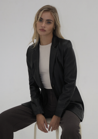 Elevate your style with the Ava leather blazer. Its longline silhouette and structured design make it refined yet bold.