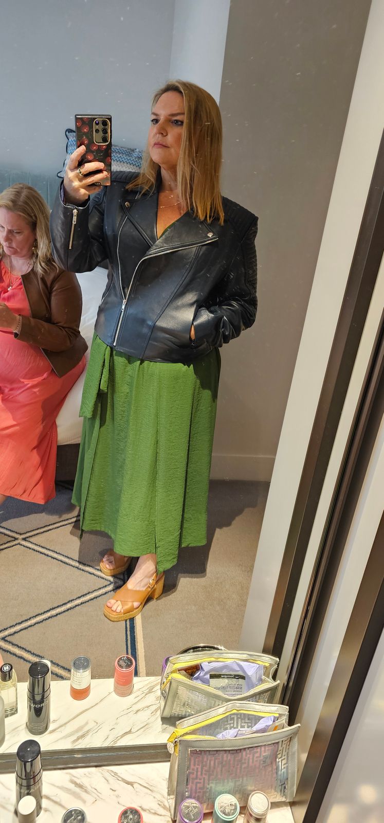 Beautiful jacket, I find it to be true to size. Great piece to have on top of a dress for the cooler summer evenings. Very happy with my purchase.