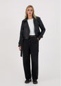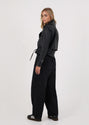This cropped women’s jacket features an oversized notched collar, tonal belt, and subtle hardware. Fully lined in satin, it’s designed to wear open or cinched, layered or solo. Whether styled with denim or tailoring, it’s a seasonless staple with edge.