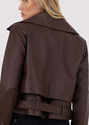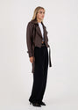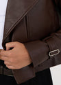 Inspired by classic moto silhouettes and reimagined through a minimalist lens, the Noa Biker is available in Black, Burgundy, and Chocolate. Designed alongside the Solene Trench, the two were created to complement one another in form and finish.